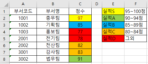 연말에 각 부서를 평가를 진행하고 인센티브를 지급하기 위해 평가 점수를 입력하였습니다.